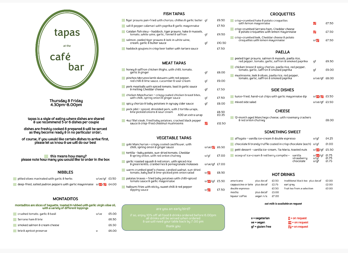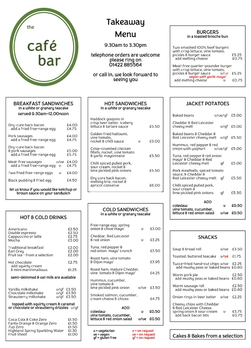 the cafe bar Menu